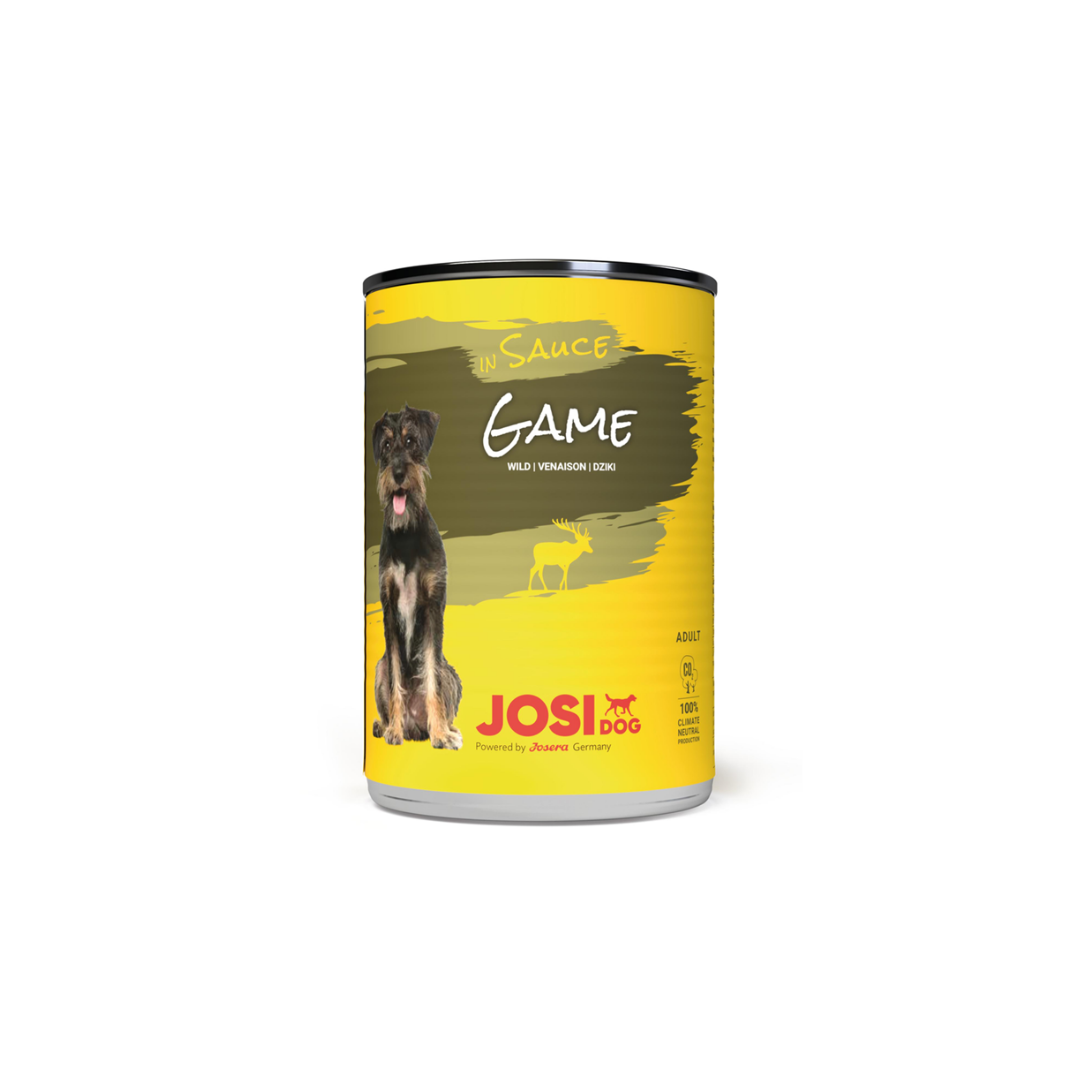 JosiDog Game in Sauce offers a gourmet mealtime experience with tender game meat (venison) in a rich, flavorful gravy. This complete wet dog food is specially developed for adult dogs, providing essential proteins, vitamins, and minerals to support vitality and health.